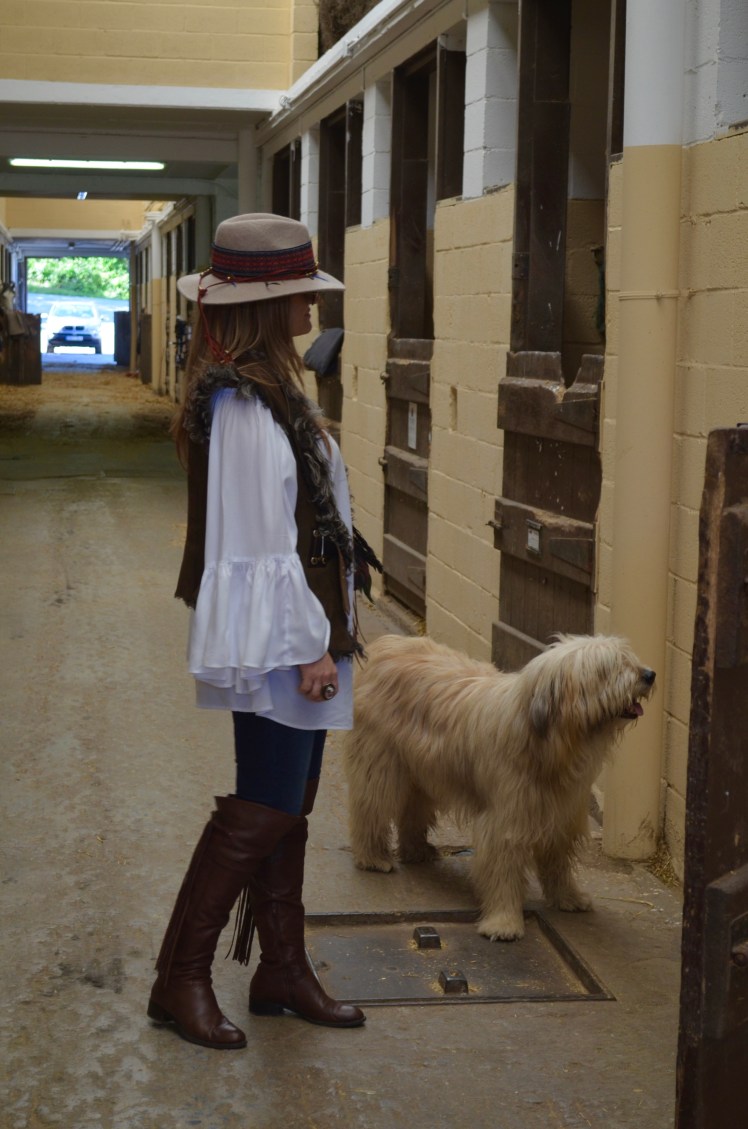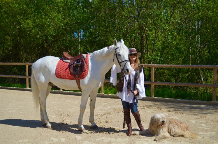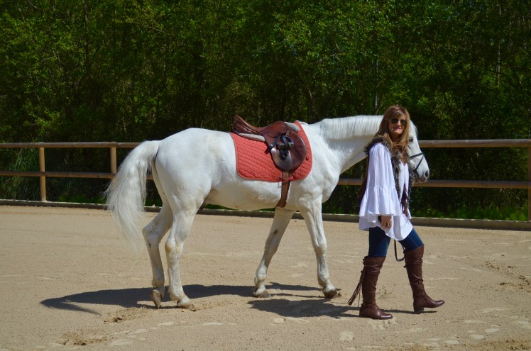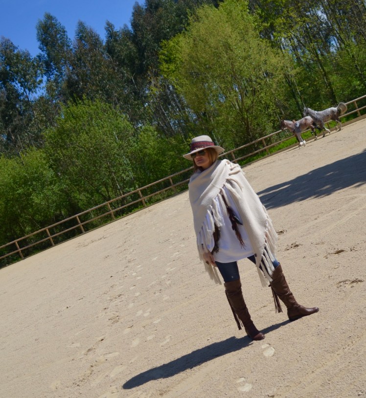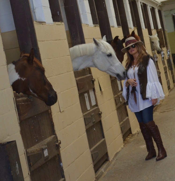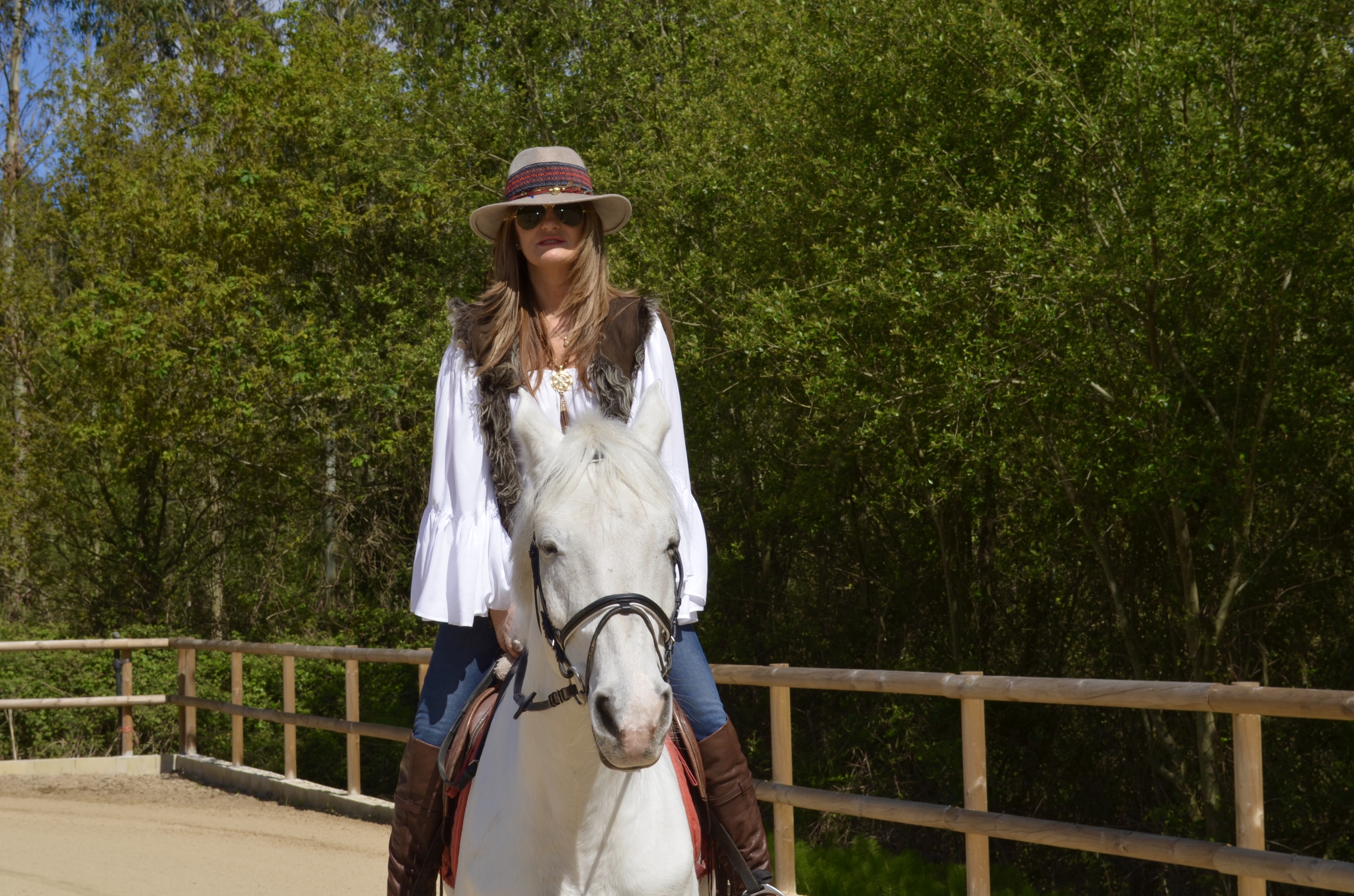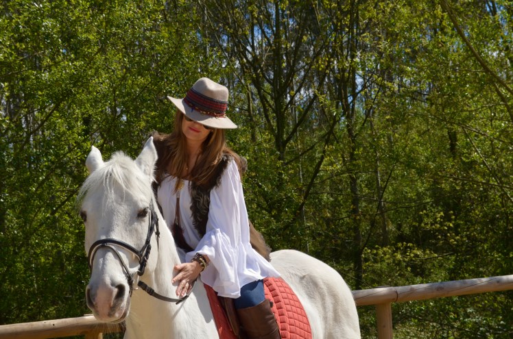Con un look muy ranchero me presento en este Club, unos jeans combinados con una holgada camisa para poder llevar las riendas mas cómodamente, sin faltar un chaleco en piel en tonos marrones como las botas y como no?,mi sombrero al que he customizado añadiendo las cintas con abalorios.Espero que os haya gustado la vestimenta para este reportaje y sobre todo la belleza de estos caballos nobles y leales.