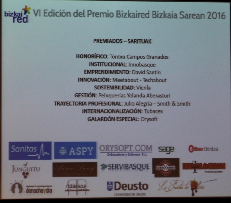 Premio Especial ; Orysoft, Entregado por el Presidente de Bizkaired Igor Vega, lo recoge Jorge Corcuera y su relevo generacional Borja Corcuera.