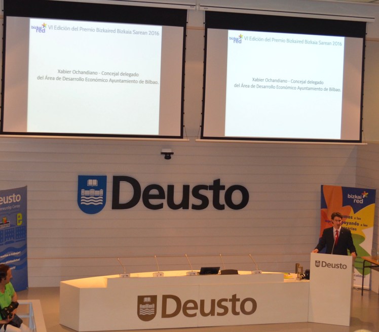 Con un estilismo muy personal acudo a la VI Edición de Premios Empresariales Bizkaia Sarean Bizki Bizkaired 2016 que se celebra en la auditoría de la Universidad de Deusto.