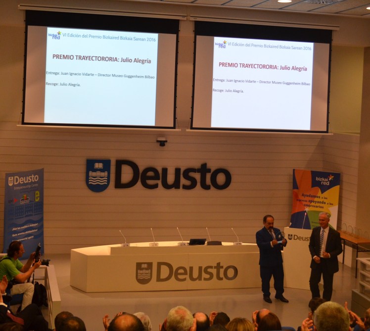 Premio Trayectoria a Julio Alegría de Smith&Smith una de las charlas más divertidas como es él. Lo entregó Juan Ignacio Vidarte, Director Museo Guggenheim Bilbao.