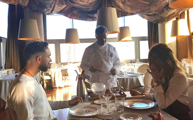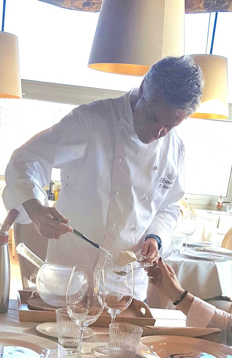 Con un éxito arrollador el Ajo blanco de trufa con espárragos y gambas, ajo blanco hecho sin ajo, una sopa de almendras malagueña en la que han suprimido el ajo por una trufa que se llama «tuber albidum pico» proviene de Italia y la trae Toscobosco una empresa italiana de trufas exclusivas.