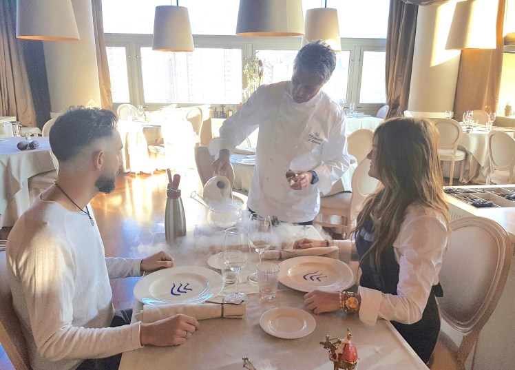 Una combinación original y rica que llega a la mesa entre humos y efectos del hielo seco, como señal de que empieza el espectáculo gastronómico.